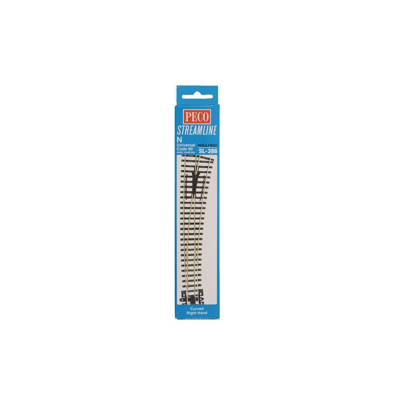 Peco SL-386 Curved Double Radius Streamline Insulfrog Right Hand Turnout