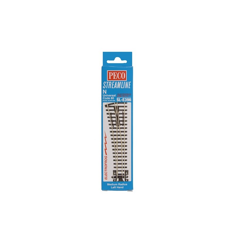 • SL-E396 N Gauge Medium Radius Streamline Electrofrog Left Hand Turnout N Gauge